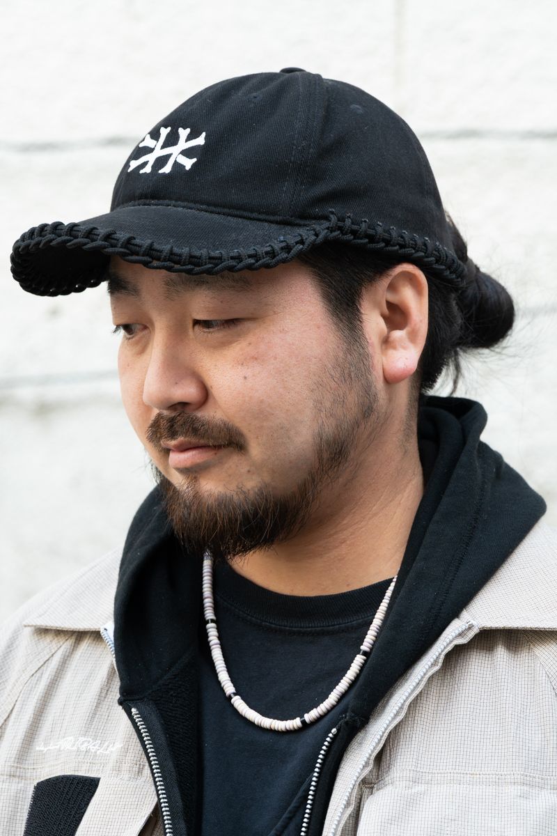ジャケット、パーカ=ともにエレファント トライバル ファブリックス パンツ=ヌルトウキョウ シューズ=エレファント トライバル ファブリックス×トモアンドシーオー 帽子=ハッケイ ネックレス=不明 リング=スティーブアルビソ