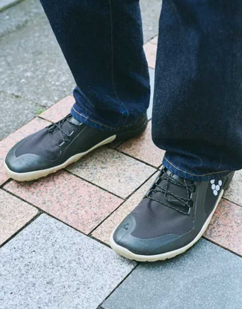 ジャケット=ラコステ Tシャツ=ユニクロ デニム=ヤエカ シューズ=ビボベアフット 帽子=ニューエラ 腕時計=アップル