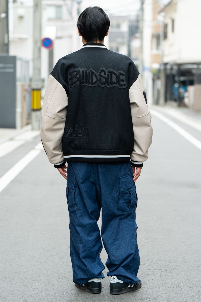 楠本さんのスナップをすべて見る楠本恭平さん(44歳)人気のカーゴパンツをネイビーで取り入れた楠本さん。武骨なスタジャンとの合わせも、どこか品良くまとまっている。
