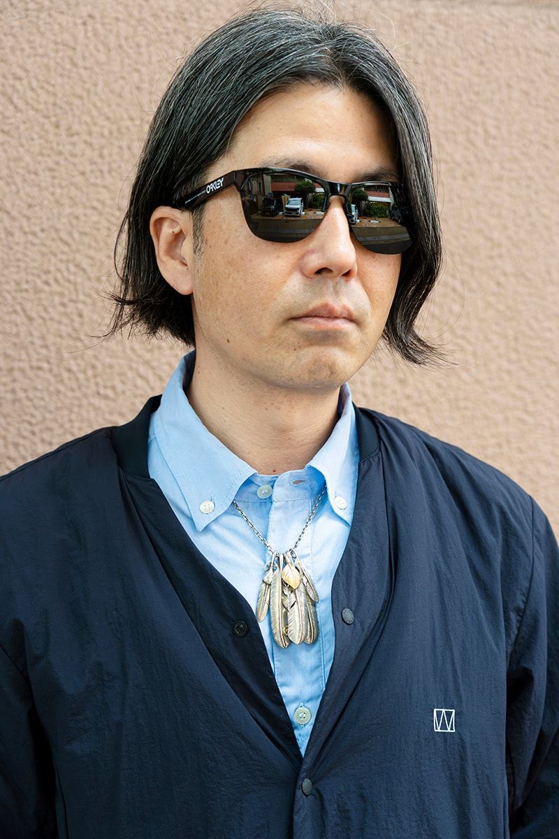 ジャケット=ユニフォームエクスペリメント カーディガン =ウィークエンド×ナンガ シャツ=シークエル パンツ=ウィークエンド スニーカー=ナイキ×フラグメントデザイン 腕時計=セイコープロスペックス アクセサリー=ゴローズ