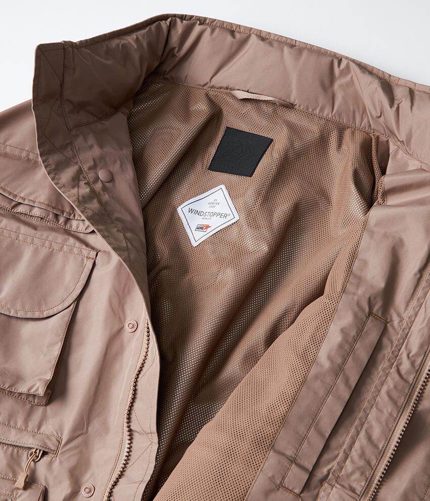 素材には、釣り人の大敵である雨と風からカラダを守る「ゴアテックス ウィンドストッパー」を採用。