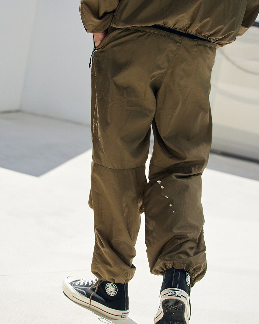 アクティブ派に愛用者の多いシャカシャカ素材のスポーティなセットアップも、ヒステリックグラマーの手に掛かればアメカジ好きに刺さる何とも魅惑的な一着へと変貌する。