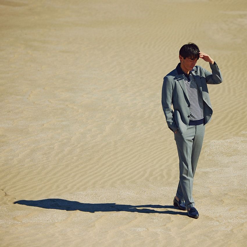 靴24万900円/ジョンロブ(ジョン ロブ ジャパン 03-6267-6010)、スーツ24万7500円/ラルディーニ、ポロシャツ3万6300円/フィリッポ デ ローレンティス(ともにトヨダトレーディング 03-5350-5567)