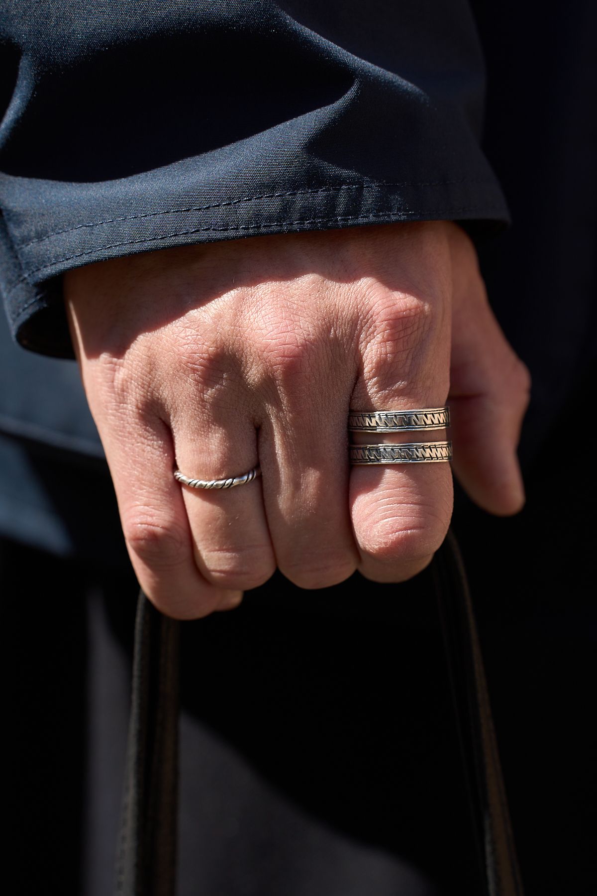 ジャケット=バブアー カーディガン=ザラ Tシャツ=ユニクロ パンツ=GU シューズ=アディダス 眼鏡=金子眼鏡×ユナイテッドアローズ バッグ=モルフェ 腕時計=ハミルトン リング=不明