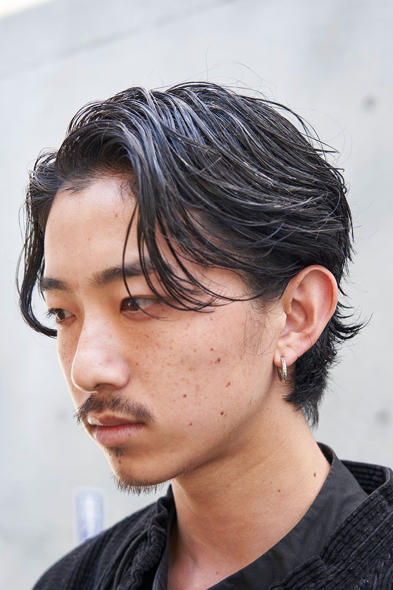 ジャケット、パンツ=ともにエマノン シャツ=ウェルダー シューズ=パラブーツ ピアス、バングル、リング=すべてエマノン×ジュエラーズ