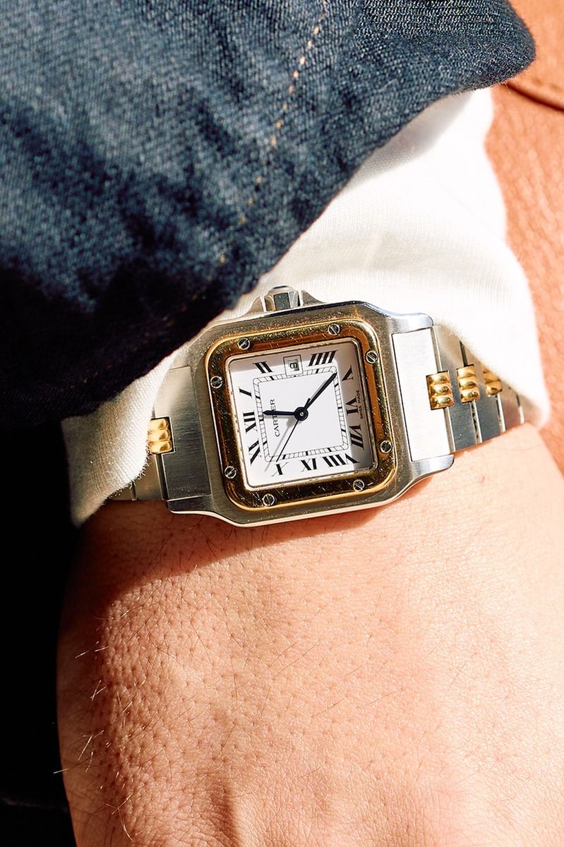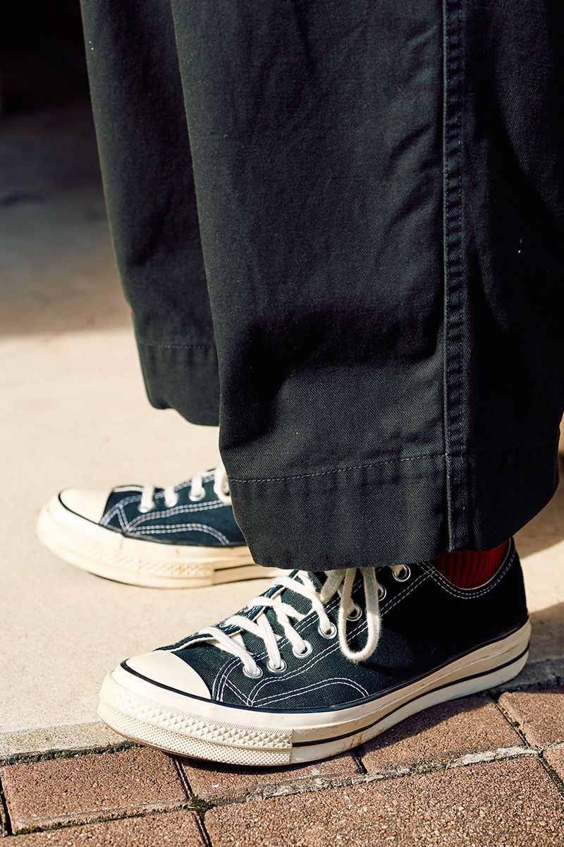 ジャケット、パンツ=ともにアプレッセ スニーカー=コンバース 腕時計=カルティエ