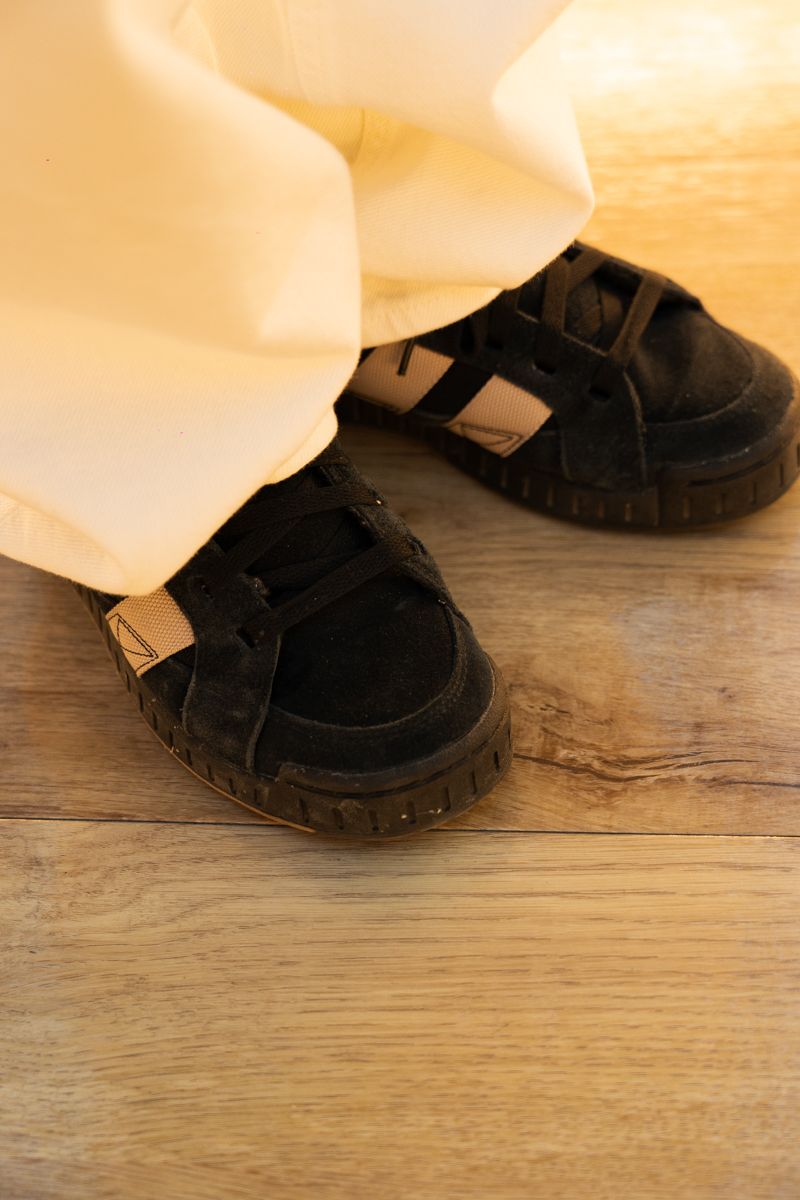 とはいえ、肩肘張らず。そんなモダンなリラックス感はルーズなサイズ選び、そしてユニクロというブランド選びからも伝わる。足元の無造作な“タマリ”も、ナチュラルに洒落て見える。