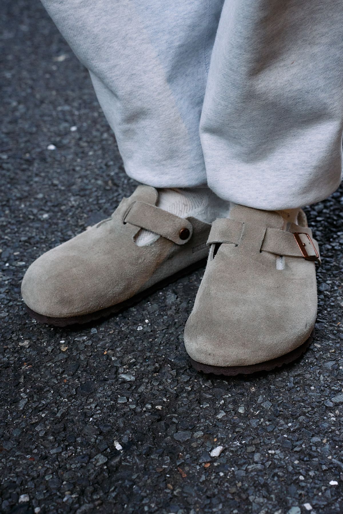 そしてビルケンのボストンは、シックなチャコールグレーをチョイス。スポーティさと品格を融合させた見事なコーディネイトは、流石のひと言。