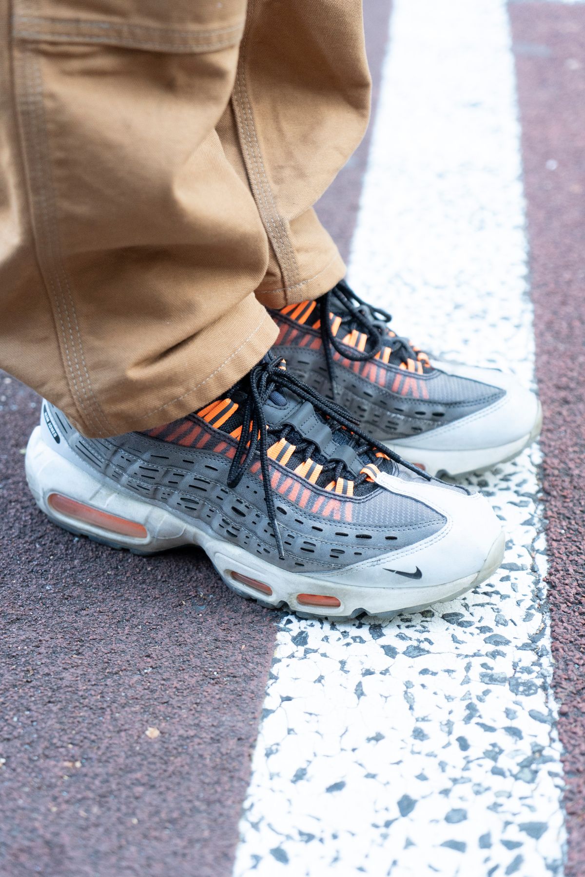 トレーナー=チャンピオン Tシャツ=テンボックス パンツ=カーハート シューズ=ナイキ 眼鏡=ルノア ブレスレット=エルメス ベルト =ノーブランド
