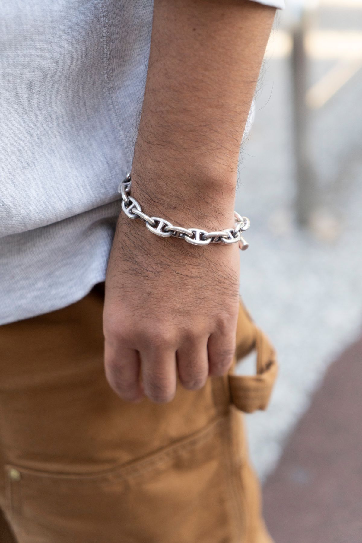 で、腕元にはさりげなくエルメスのシェーヌダンクル。好きなもの、いいものを素直にシンプルに身につける。文句なしに、格好いい大人だ。