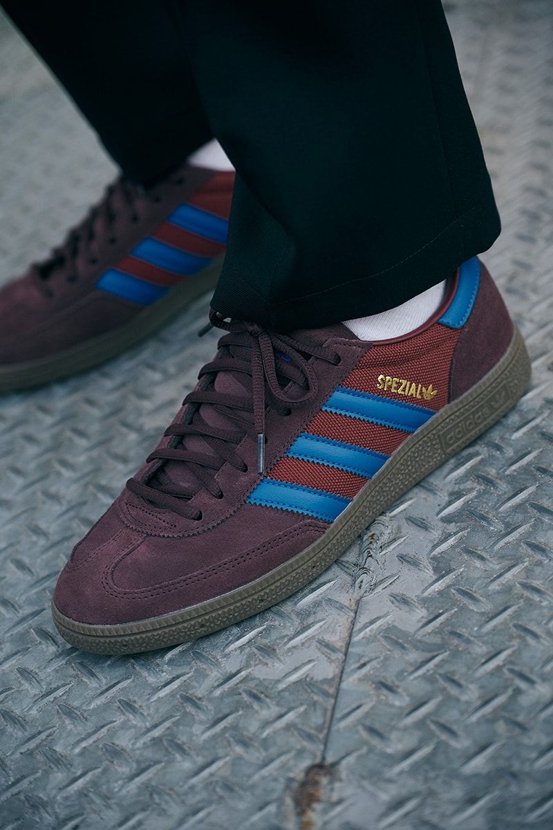 ひとつはボトムスの丈感。9分丈に調整された黒パンツはシルエットの良さも相まってスタイリッシュな印象に。そして足元のハンドボール スペツィアルだ。ボルドーとブルーの配色がコーデにさりげない個性をもたらす。
