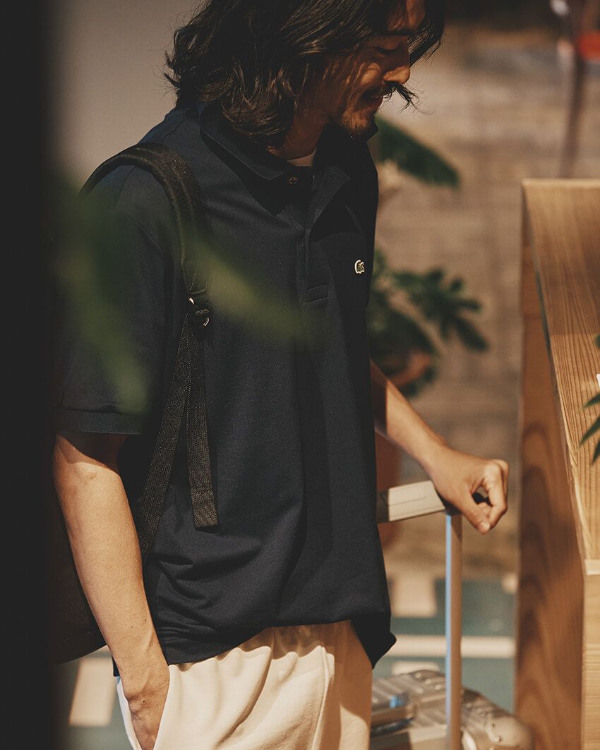 「L.12.12 ライト」に用いられる素材「ライトピケ」の“シワになりにくい”という特徴は、出張や旅行での汎用性を語る上で見逃せないポイント。