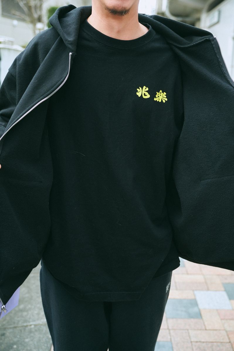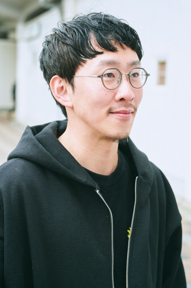 パーカ=ロサンゼルスアパレル Tシャツ=兆楽×ジャーナルスタンダード パンツ=フルーツ・オブ・ザ・ルーム シューズ=ヴァンズ 眼鏡=イエローズプラス 腕時計=アップル