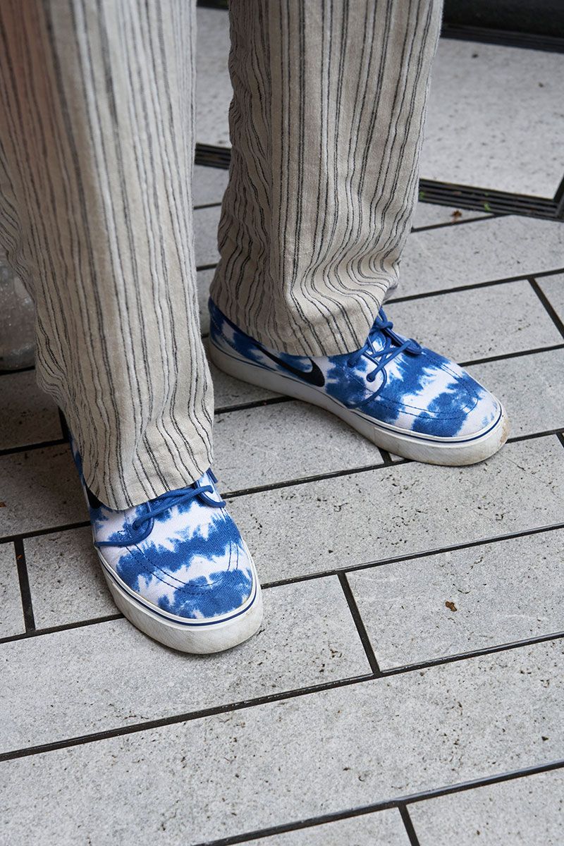 Tシャツ、パンツ、眼鏡=すべて古着 シューズ=ナイキ 帽子=ユナイテッドアローズ バッグ=オーレンド 腕時計=アバウトヴィンテージ