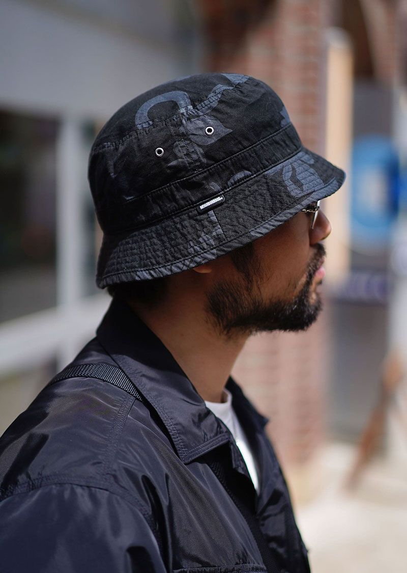 ユクさんの場合は、ショーツ丈は鉄則の膝ジャストをキープ。全身を黒でまとめながら白Tでヌケを意識し、ハットで同色の柄を取り入れるなど、細部まで隙なしの構え。
