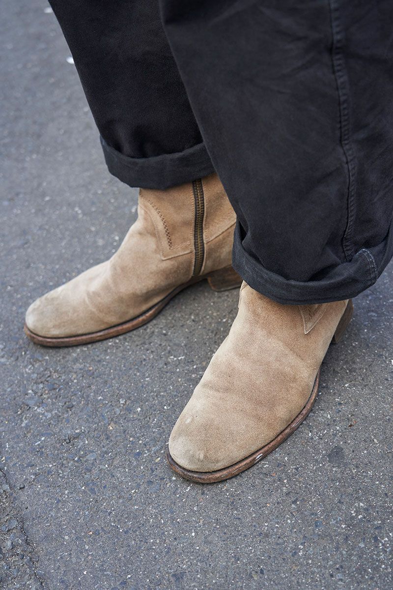 ▶︎キタガワさんのスナップをすべて見るキタガワさん(28歳)柔らかなニットとコットンパンツで質感の差をつけたコンビネーションを、ベージュの薄手ジャケット&ゴツめブーツでサンド。コーヒー&カフェラテ的バイカラーで潔く装った。