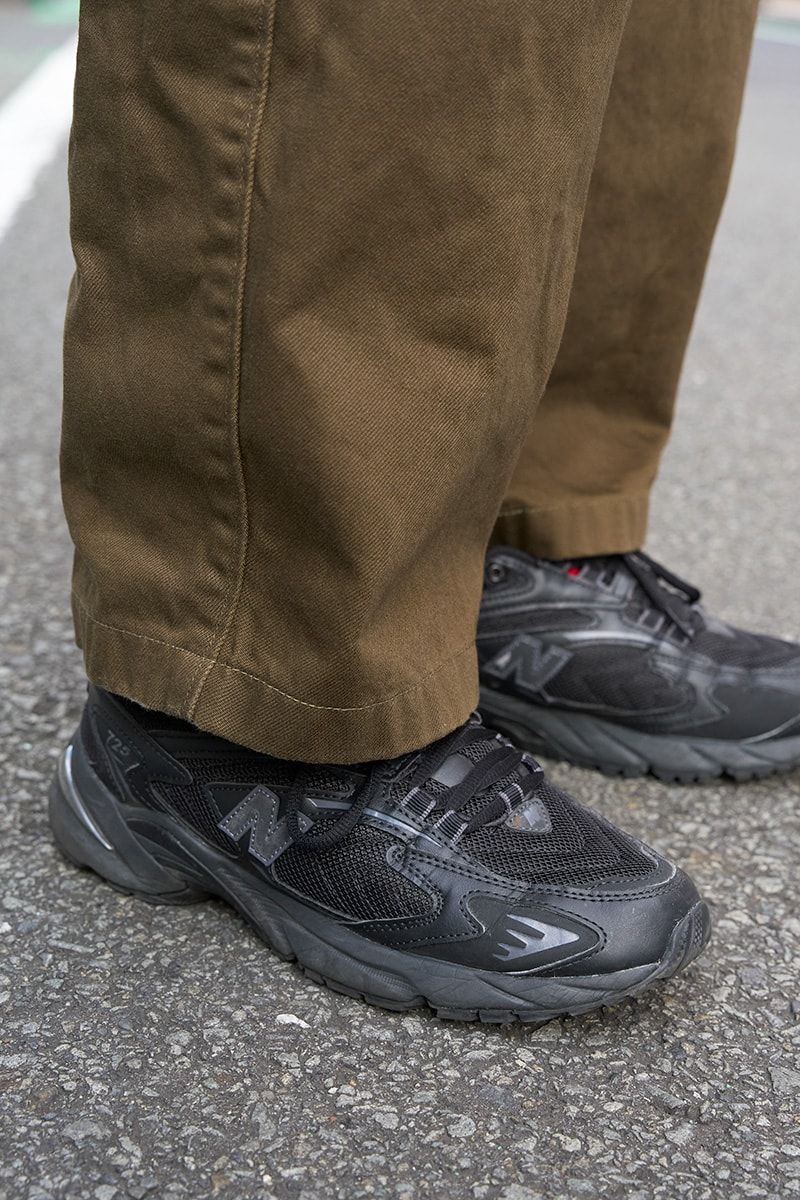 足元も気を衒わず、真っ黒な「ML725」をチョイス。重厚でありながらスポーティ。そう、適度な軽やかさを演出してくれるのも、ダボパンの相棒を担う要件なのだ。