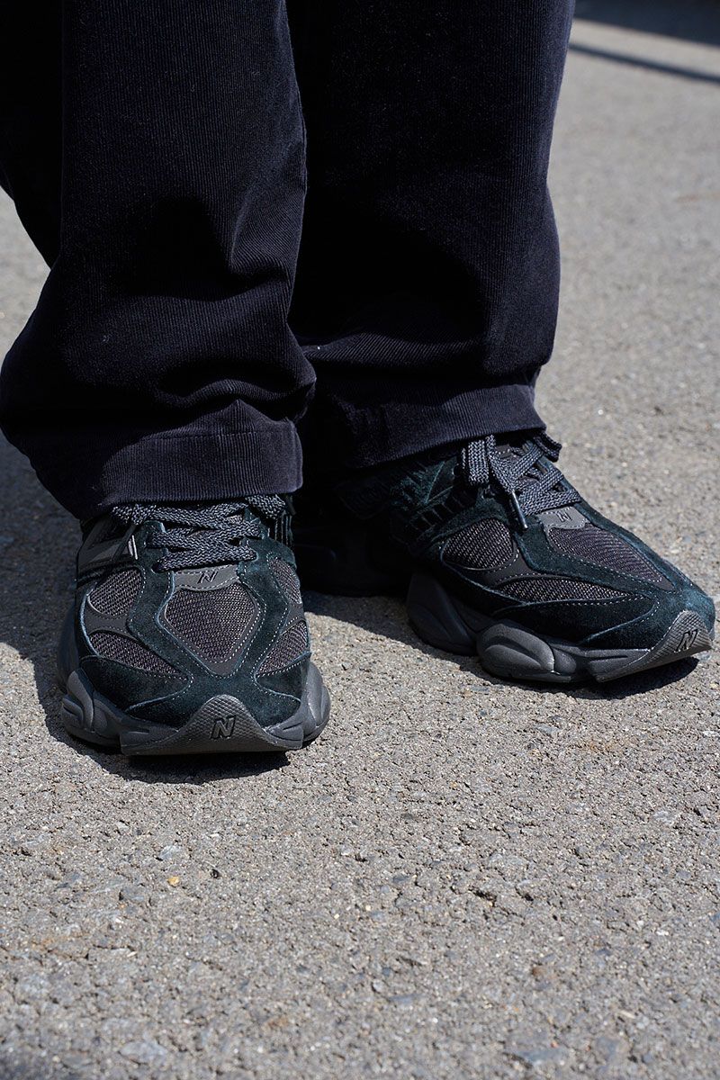 その落ち着いた雰囲気を重んじるなら、まとめ役はオールブラックのニューバランスが適任。レザーとメッシュの同色・異素材アッパーが際立つ「9060」で品良く、凛々しく。