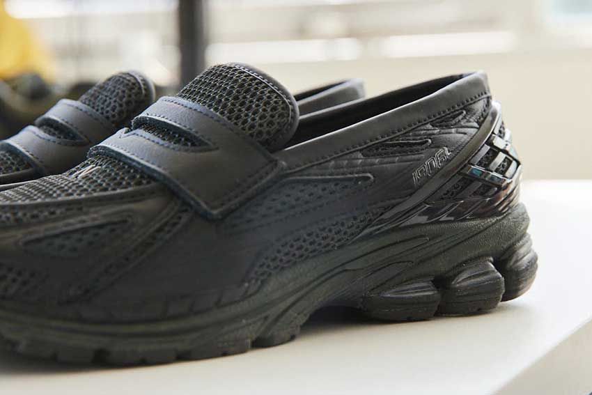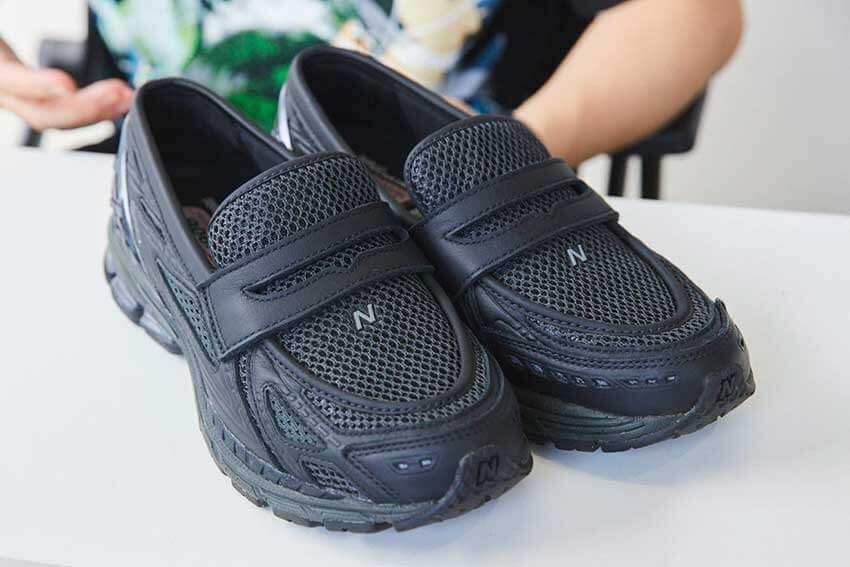 2足目は、昨年スニーカーシーン、そしてファッションシーンでも注目の的となった「1906L」だ。ランニングシューズ「1906」をベースに、ローファータイプのシルエットに再構築。「1906」のアッパーに、「860v2」のソールが融合されている。