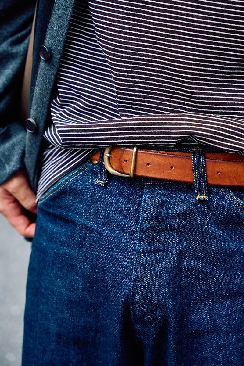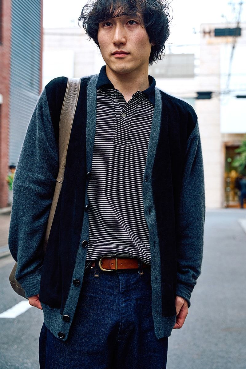 中村さんのスナップをすべて見る中村竜徳さん(32歳)ピッチ細めのボーダーポロシャツは、ビューティー&ユースのもの。レトロな風合いがバイカラーのカーディガンや味のあるブラウンのレザーベルトとマッチしている。
