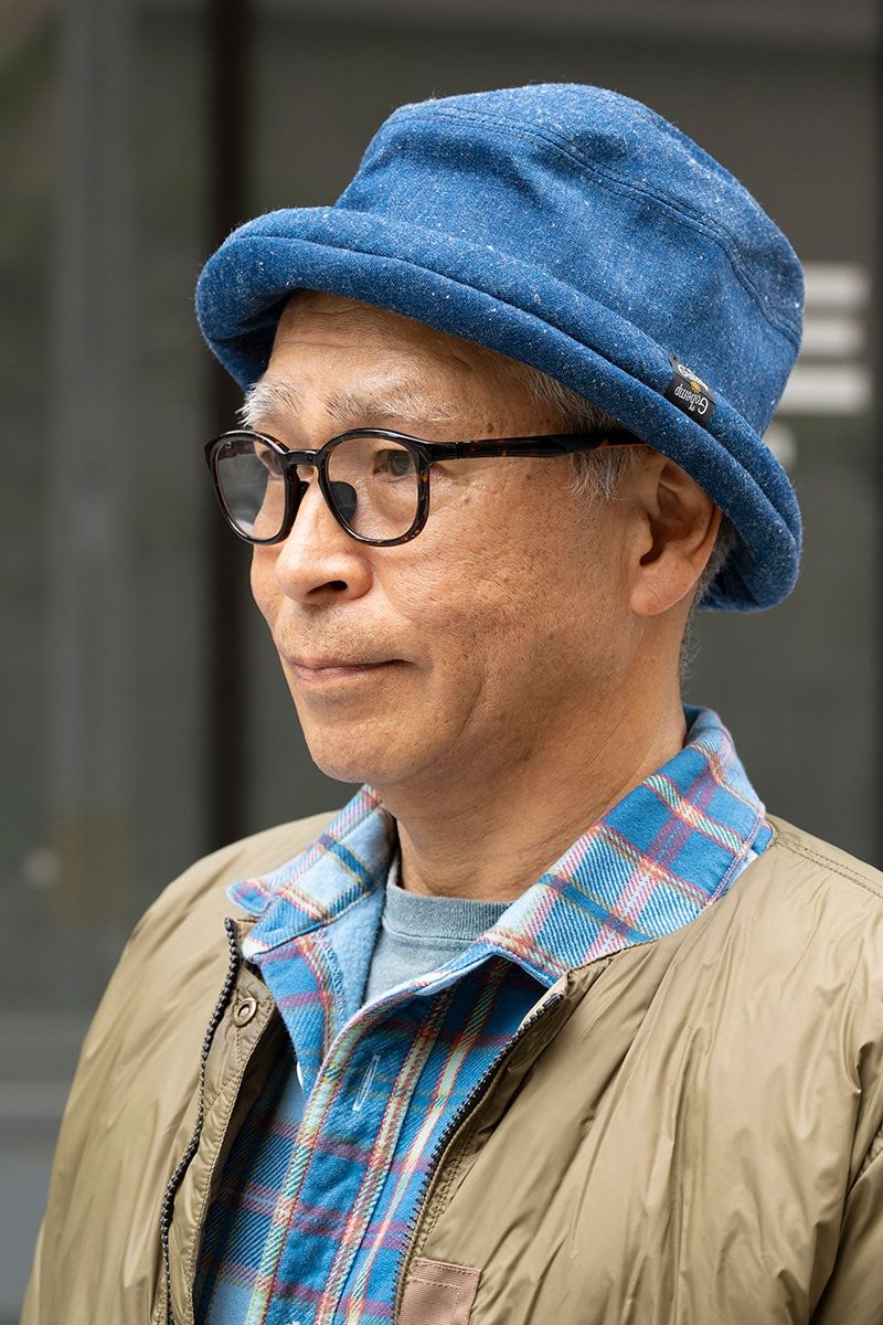ジャケット=タイオン×ビームス シャツ=グッドオン デニム、帽子=ともにゴーヘンプ スニーカー=ニューバランス