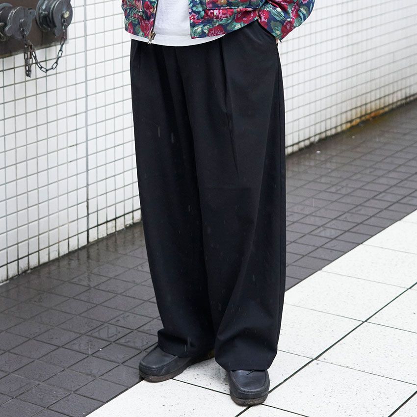 【写真10点】「ユニクロの黒パンツは太めが人気!?」の詳細を写真でチェック① シュプの花柄を引き立てる極太スラックス