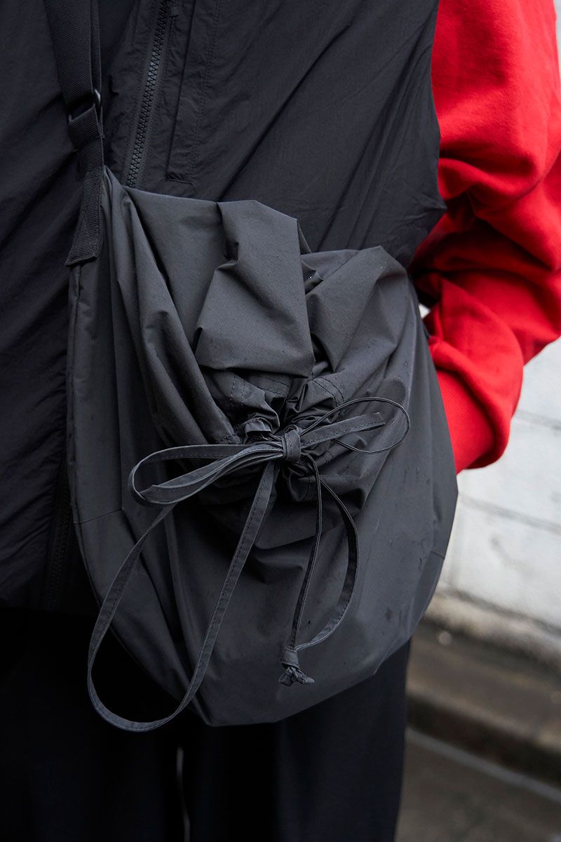 ▶︎ヨバさんのスナップをすべて見るヨバさん(24歳)ヨバさんが愛用するのもおそらくは「ドローストリングショルダーバッグ」。真っ赤なスウェットシャツにベストを重ね、パンツはザラのスラックス、足元はアディダスのローテクスニーカーでスッキリと見せた。