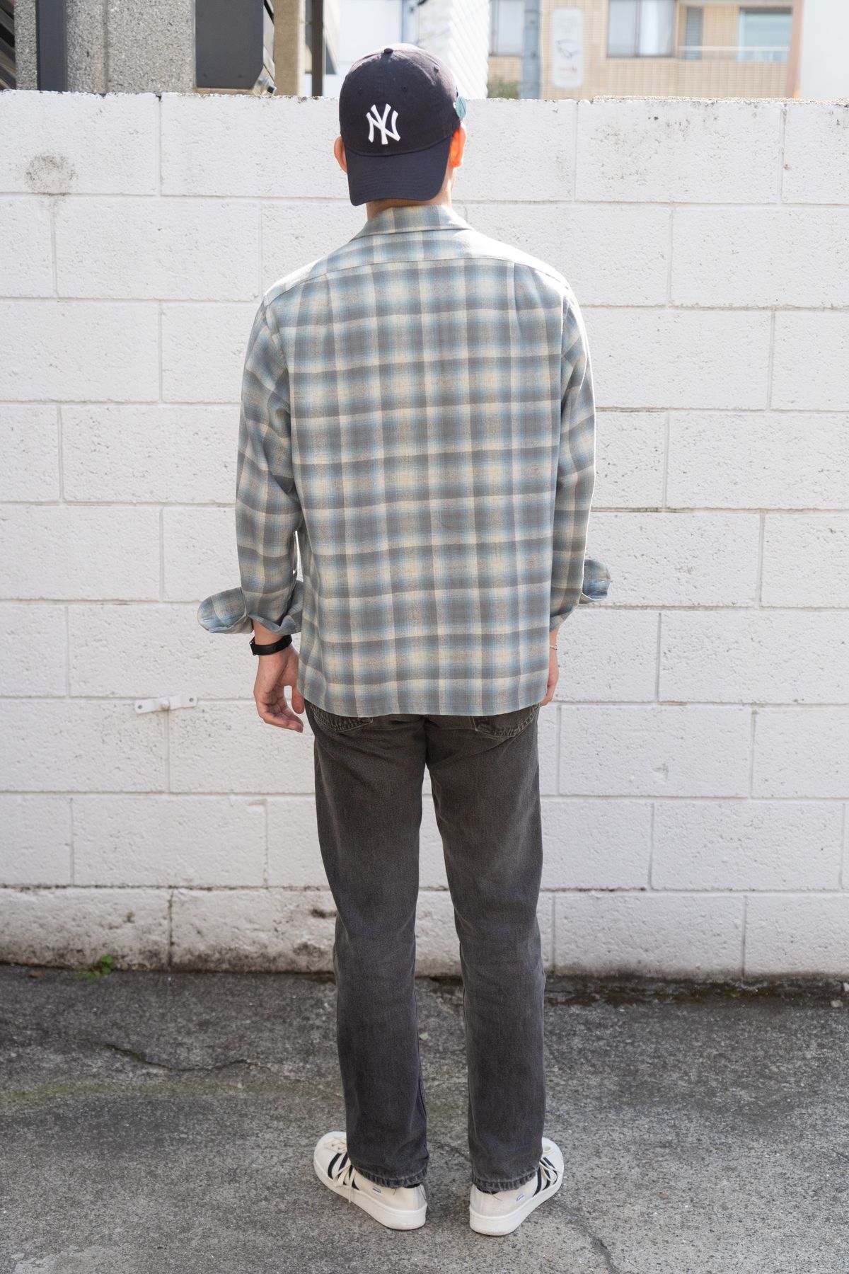 ▶高山さんのスナップをすべて見る高山 聖さん(25歳)ジャストサイズのリーバイスを、シャツとスニーカーで素直に。作為のなさそうな着こなしのなか、フェードしたデニムのグレーカラーとダークトーンのチェックがマッチする。