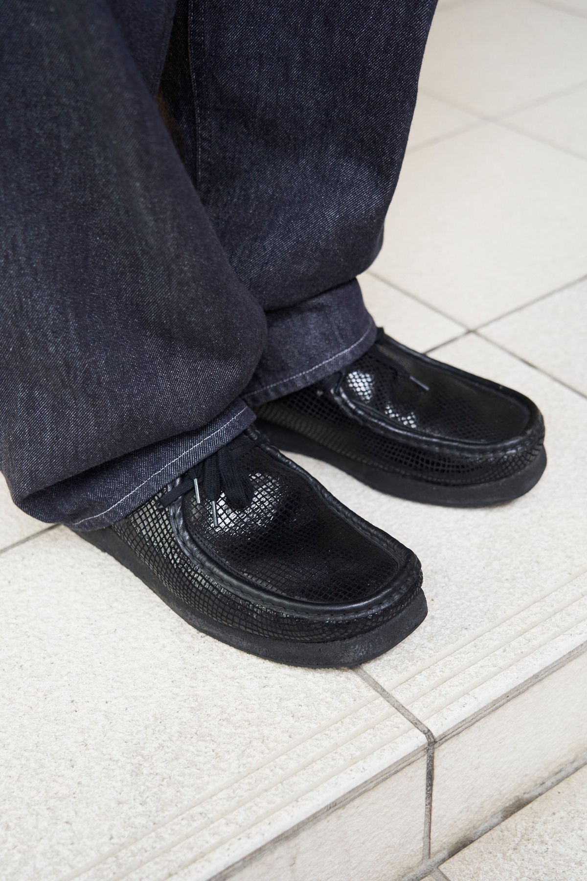もちろんブラックでもいいだろうが、リジッドを選んだことでコーデにさらなる奥行きを生み、個性派トップスがもたらしがちなハードな印象も余裕で回避。この“ちょうどいい”カジュアル感。やはりリジッドデニムにしかない魅力って、あるよね。