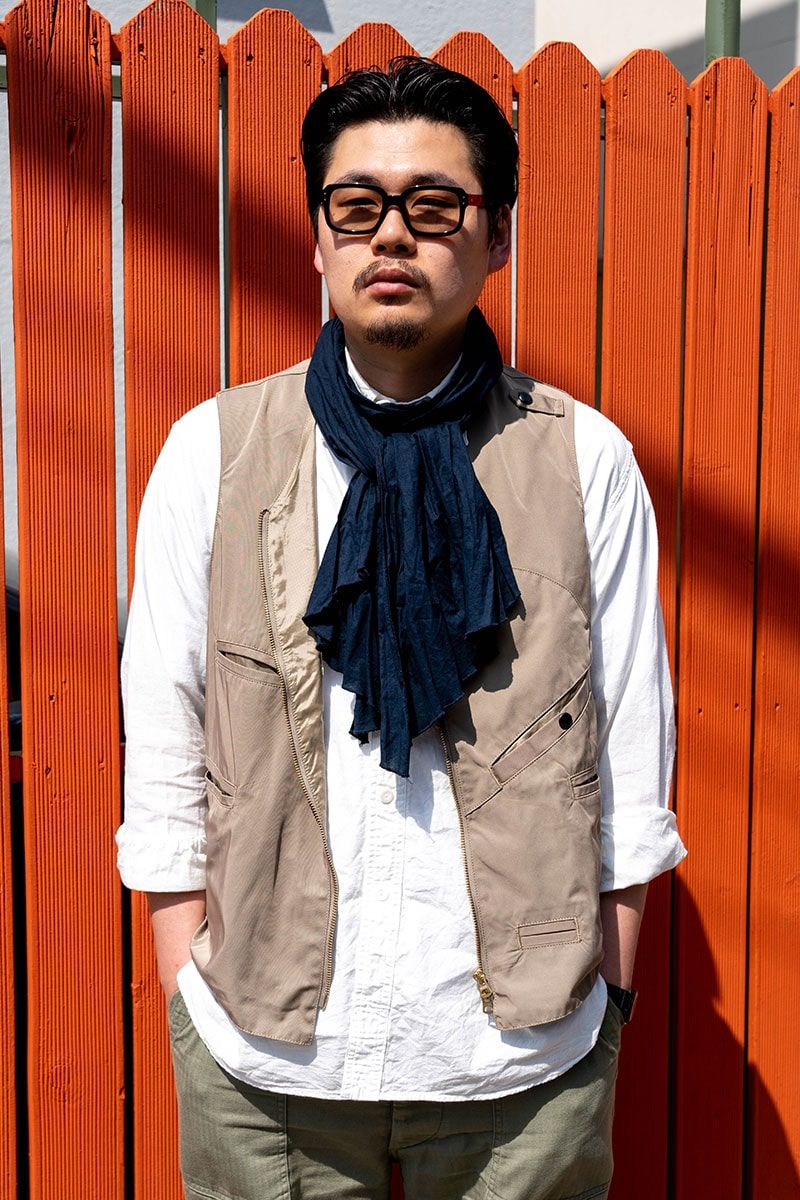 ▶イさんのスナップをすべて見るイ・キョングンさん(34歳)お隣・韓国で洒落者をハンティング! 全身をアースカラーでまとめたイさんは、ジャパンブランド「ザ コロナ ユーティリティー」のベストをセレクトした。