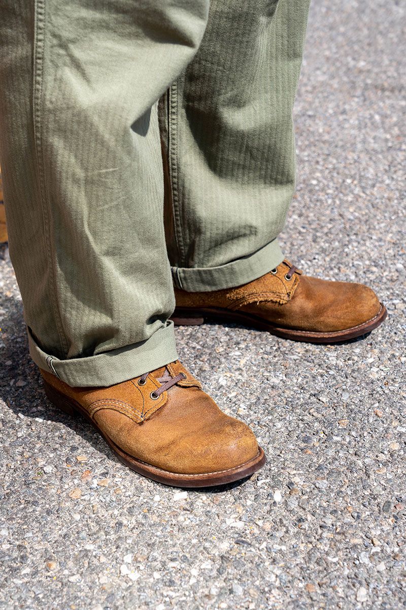 シャツ=ポストオーバーオールズ ベスト=ザコロナユーティリティー パンツ=ファティーグスラックス シューズ=レッドウィング 眼鏡=レスカ