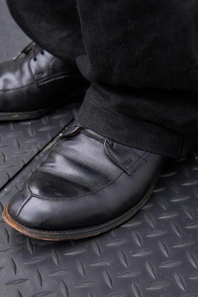 そのコージーな雰囲気を、ブラックデニムと革靴で引き締める。ただし、ワイドシルエット&オールデンというセレクトゆえに、余計な緊張感は皆無だ。