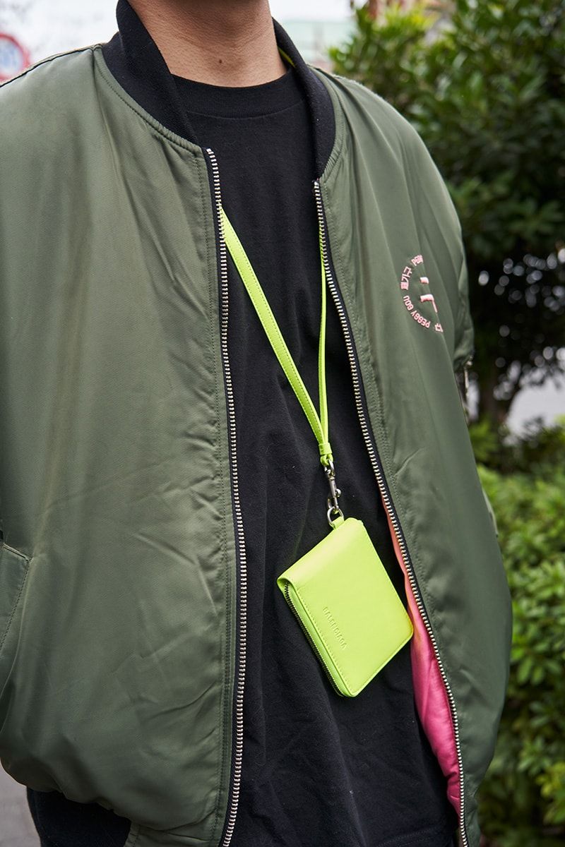 首から下げたビビッドカラーのミニウォレットはアクセントとしてコーデに彩りを与える。よく見るとアクセ使いも巧みだ。どのパパにも言えることだが、本当にバランスの取り方が上手!