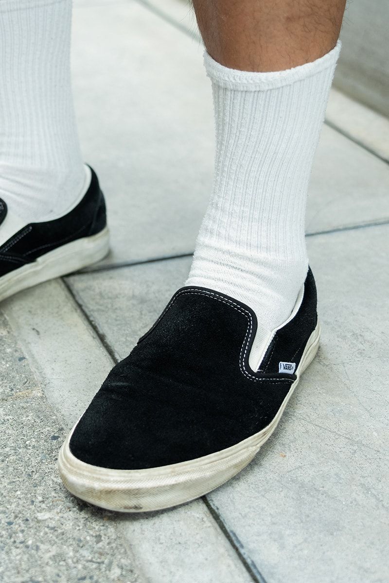 カットソー=シテン ショーツ=アクネストゥディオズ スニーカー=ヴァンズ サングラス=レイバン