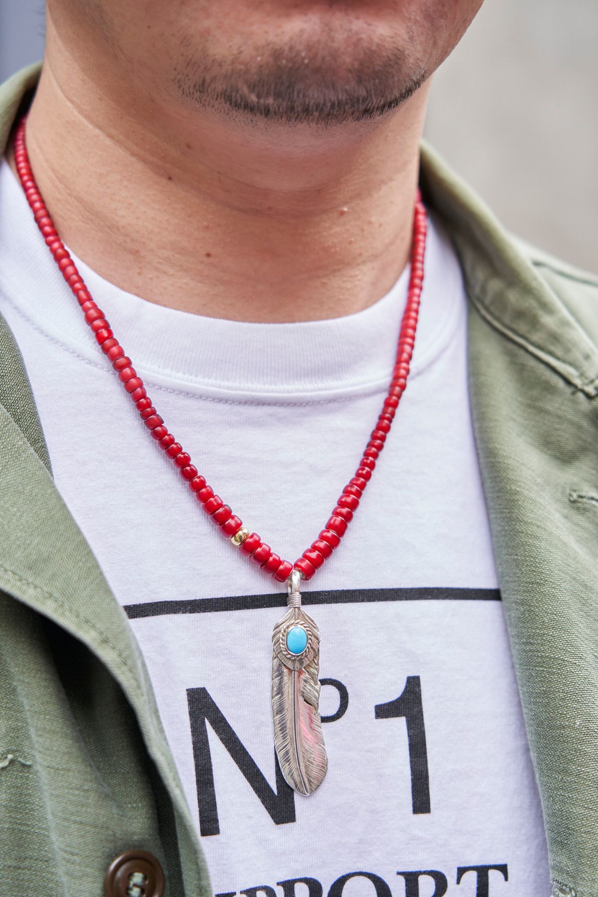 シャツ、デニム=ともに古着 Tシャツ=ネイバーフッド シューズ=ヴァンズ 帽子=ネイバーフッド 腕時計=ロレックス ネックレス=ゴローズ