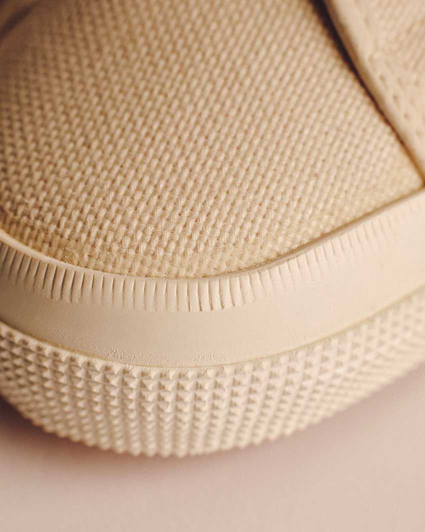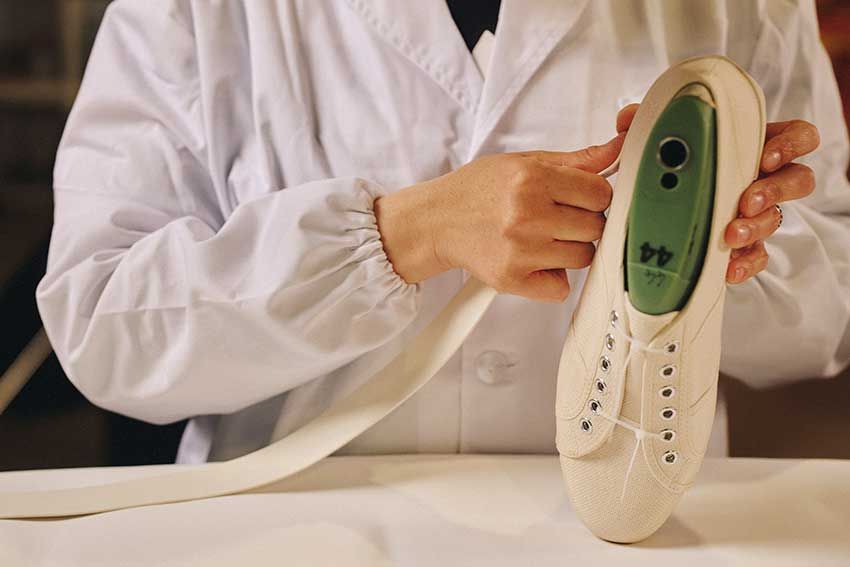 アッパー・パターンは往時のそれを採りつつ、もとよりミニマルだったデザインに磨きをかけた。具体的にはビスネームやアルミニウム製アイレットのエンボス・ロゴを排除した。