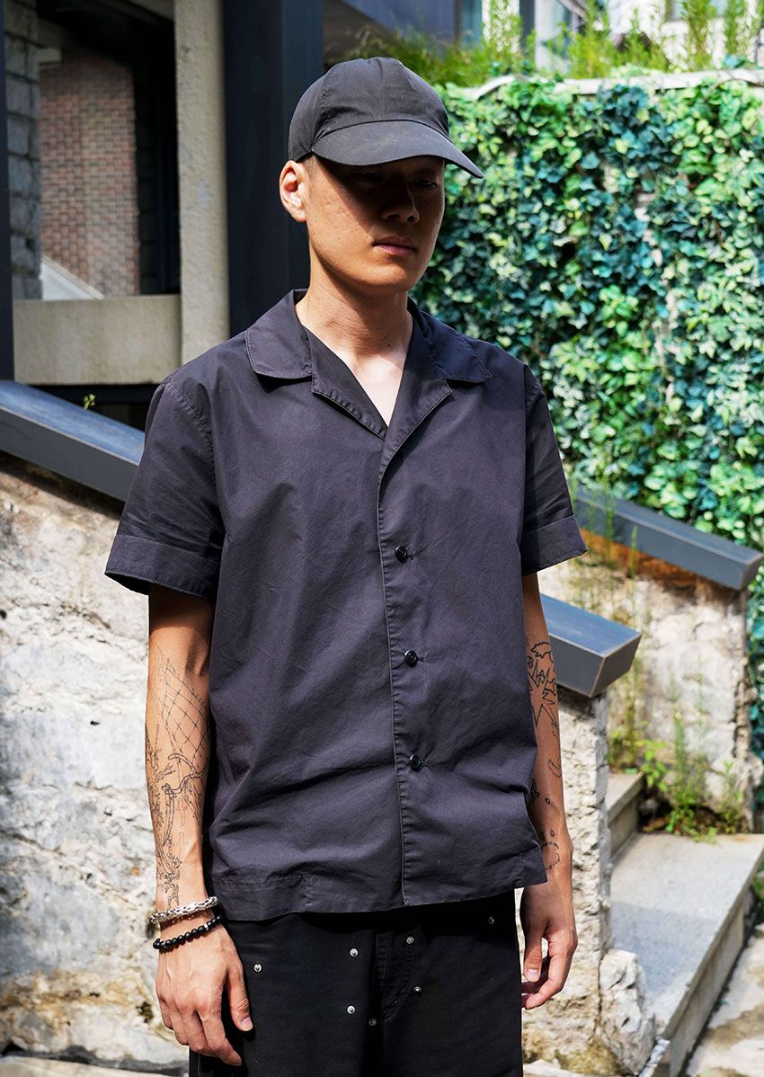グォンさんのスナップをすべて見るグォン・スンホさん(26歳)素材感や小物使いでオールブラックを軽やかに仕上げたグォンさん。スタッズを配したカーゴパンツやボリューム感のあるハイテクスニーカーを合わせながらも、開襟シャツで涼しげな印象に。