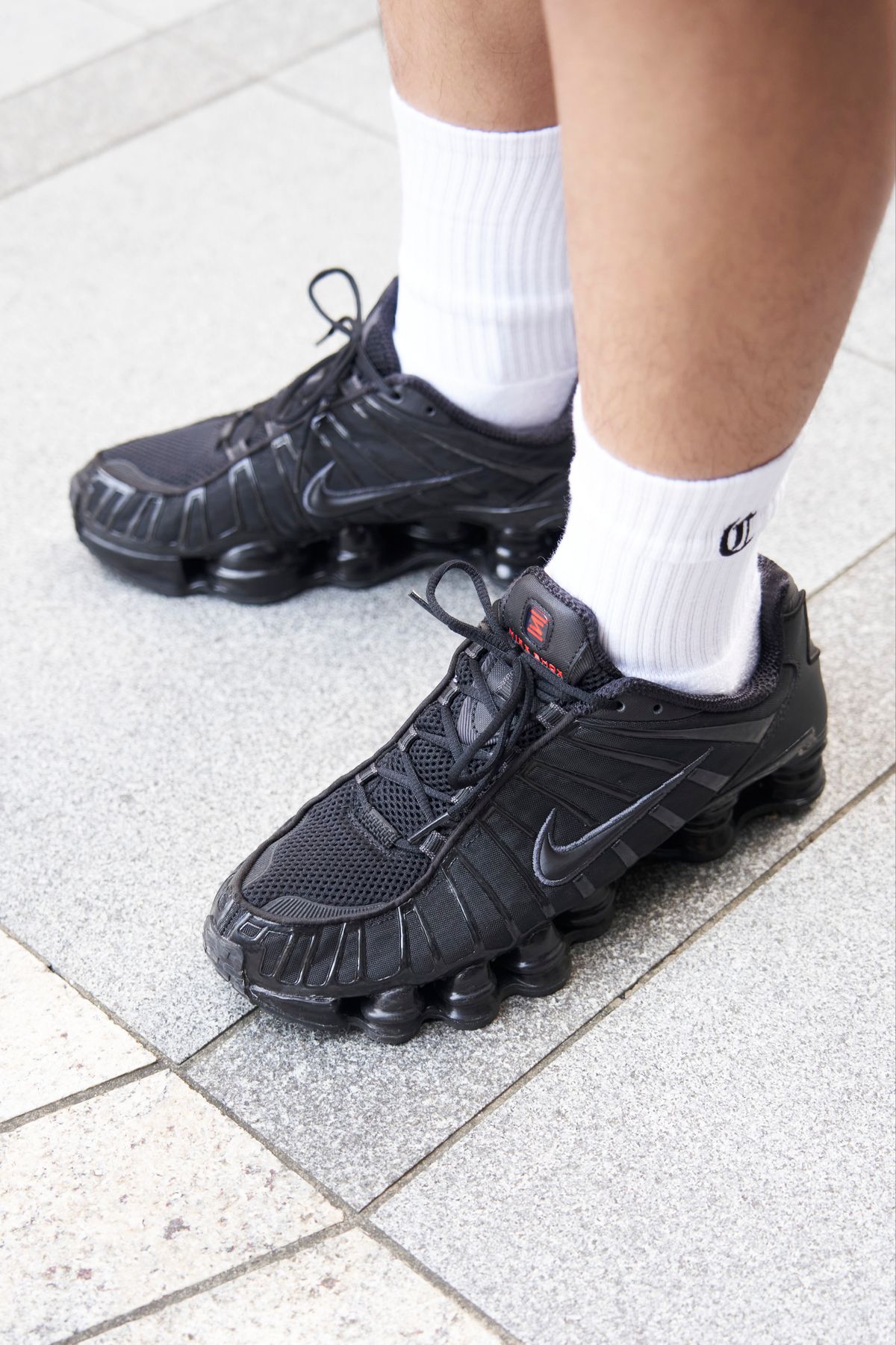 ③ スウェット×短パンのリラックスコーデも黒縛りで