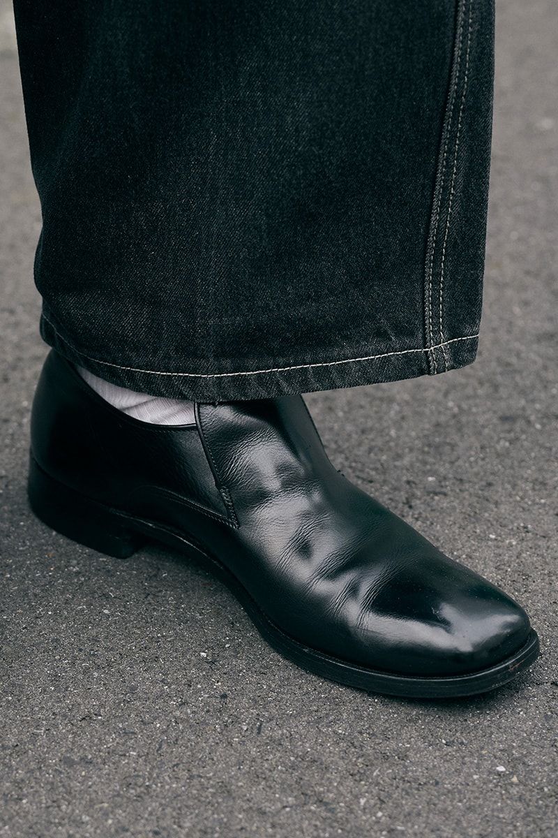 さらに、合わせたジーンズはワイドめを、シューズもブーツではなくスリッポンを選んでいるため往年のアメカジとは一線を画す。