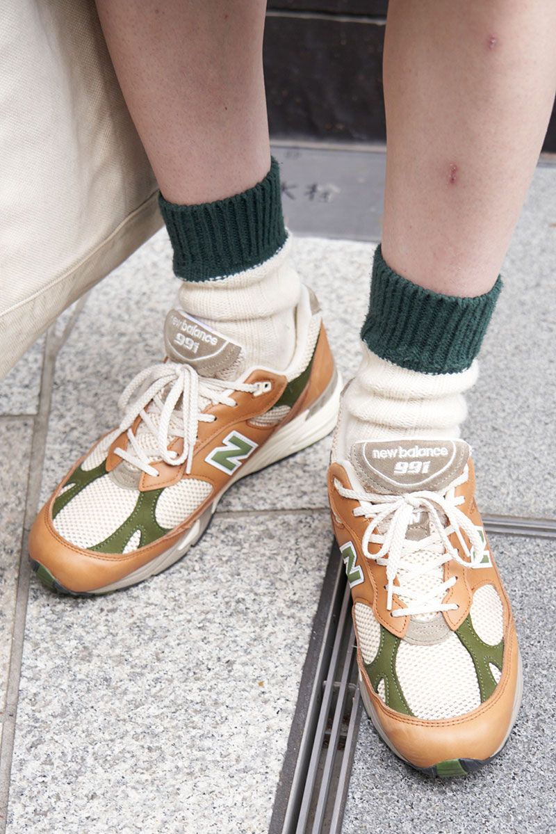 すでにキャラが立ち十分の出で立ちゆえ、足元は穏やかにウェアと同系色で。と思いきや、NYブランドとのコラボニューバランス。参りました!