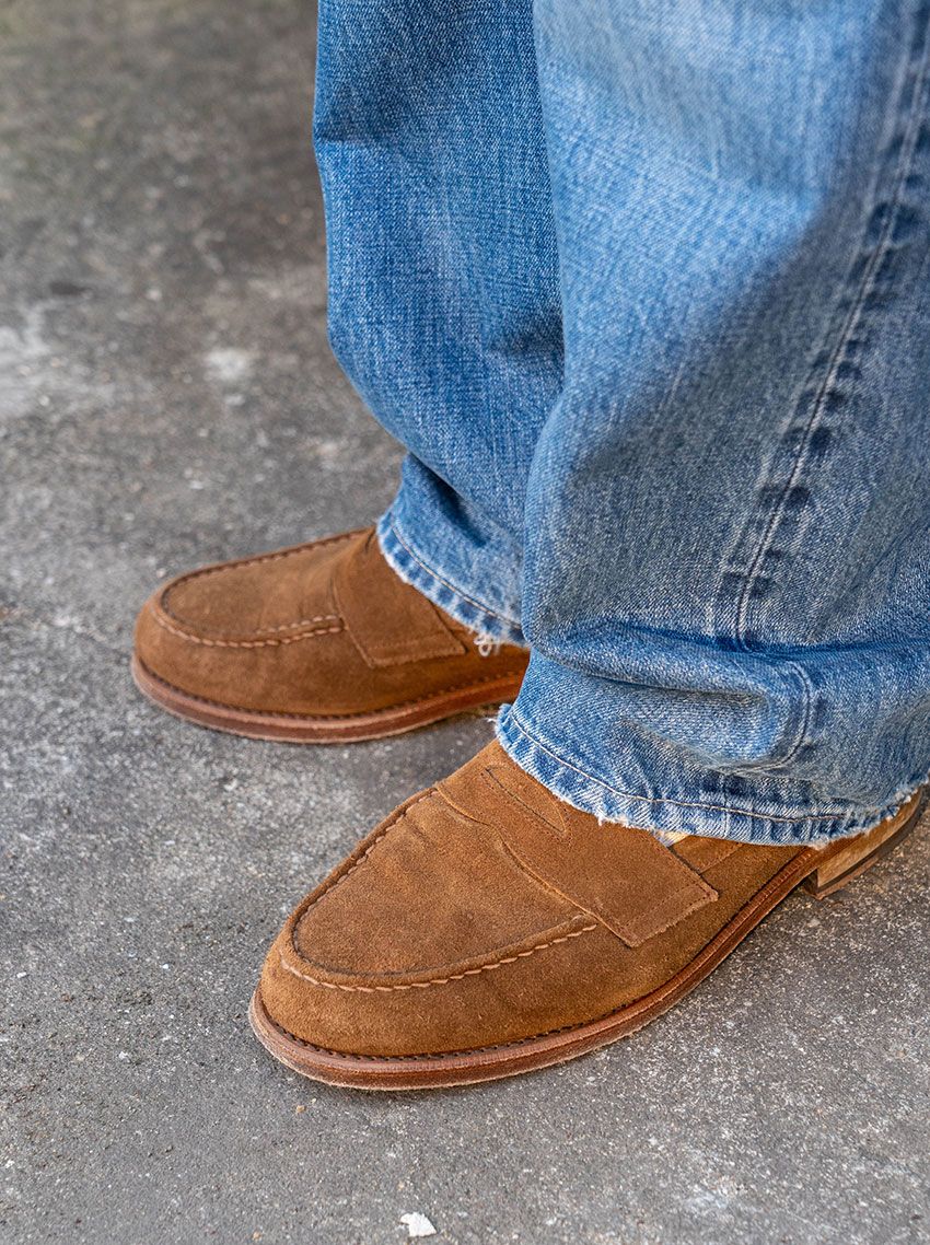ジャケット=リネクツ シャツ=ユニクロ デニム=ビヘビアー シューズ=メラボロ キャップ=古着