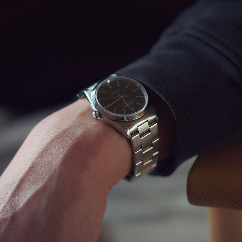 スウェット=コモリ パンツ=ステューシー スニーカー=ヴァンズ サングラス=アヤメ 腕時計=ロレックス