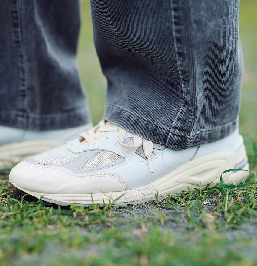 スウェット=古着 パンツ=カジャ スニーカー=ニューバランス サングラス=ノチノ・オプティカル キャップ=デイドリーム ブレスレット=オヴィー