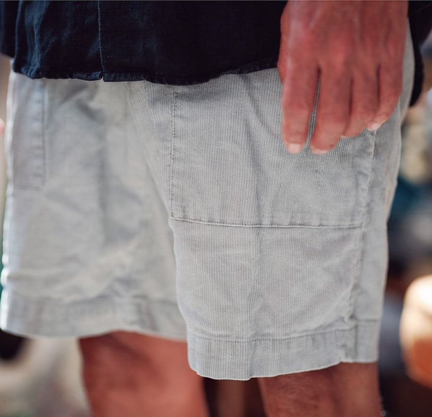 ともするとバカンス感の強いリネンシャツは、ブラックを選ぶことでモダンに着こなせる。グレーのコーデュロイのショーツと組めば、より黒シャツの深みを引き立てながら、春らしい軽やかさの演出にも。