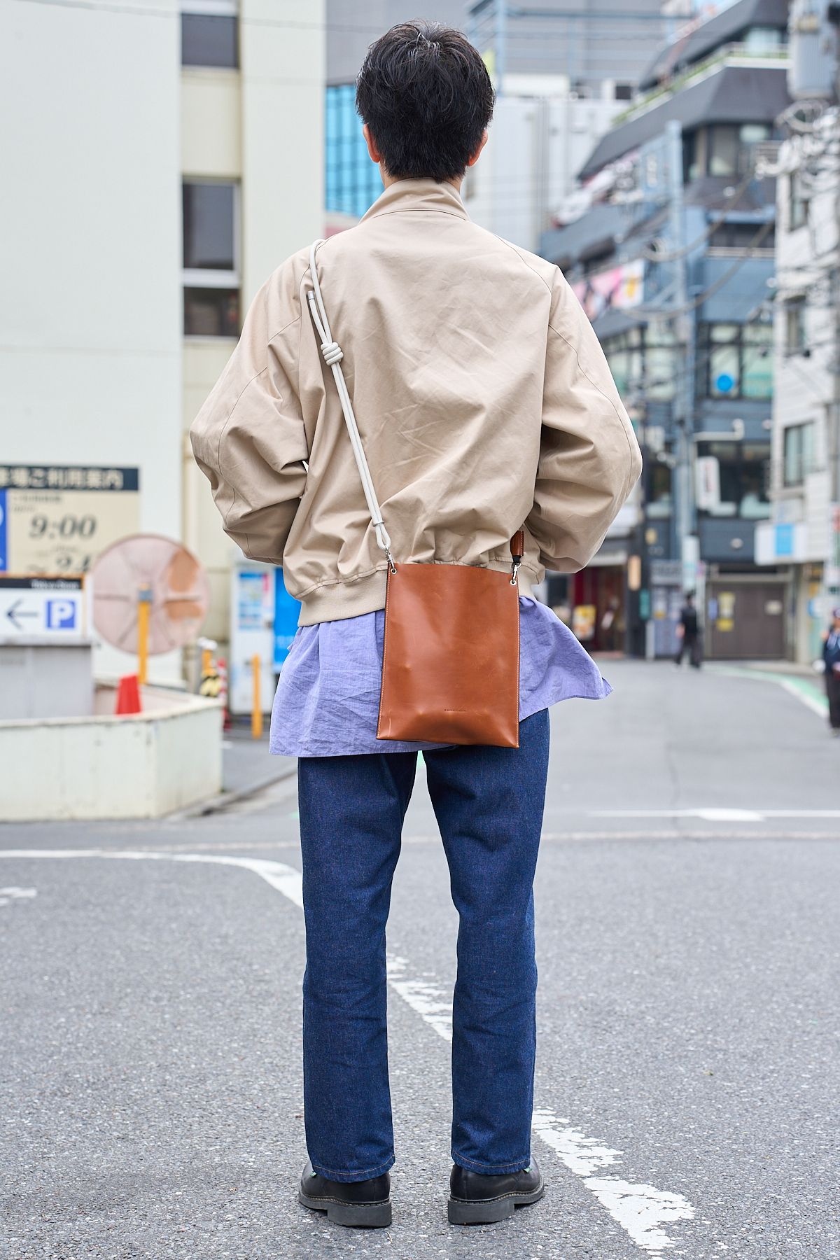 ▶︎吉野さんのスナップをすべて見る吉野翔太さん(30歳)ショートでワイドなアウターに、ロングなシャツ。アンバランスが楽しいトップスレイヤーは、ベージュ&ライトブルーの優しいバイカラーで落ち着きも醸し出す。