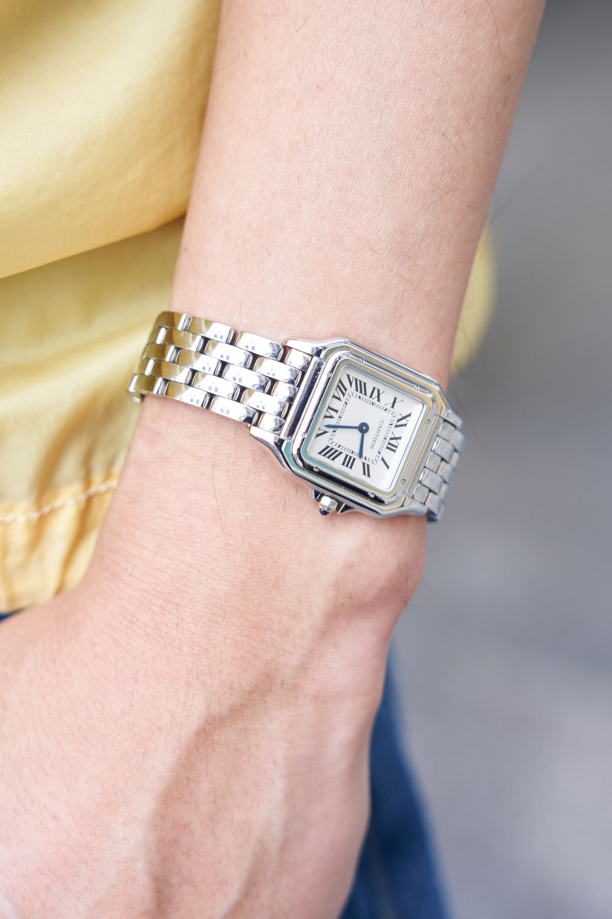 白でまとめた足回りの清潔感、トップブランドを起用したバッグ&腕時計のクラス感など、アクセントの付け方だって巧み。ともすると野暮ったいショーツも、結果的にいいアジに。