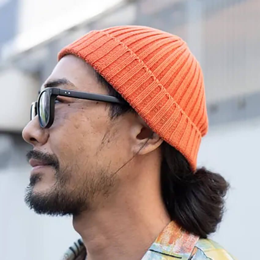 フレッシュでエネルギッシュ。数ある挿し色のなかでも、オレンジのチカラは格別。黒にも青系にも合うし、ミリタリーを例に挙げるまでもなくカーキとの相性も抜群だし。さらに柔らかなニットキャップで取り入れれば、優しい雰囲気も演出可能。例えばこんなふうに。