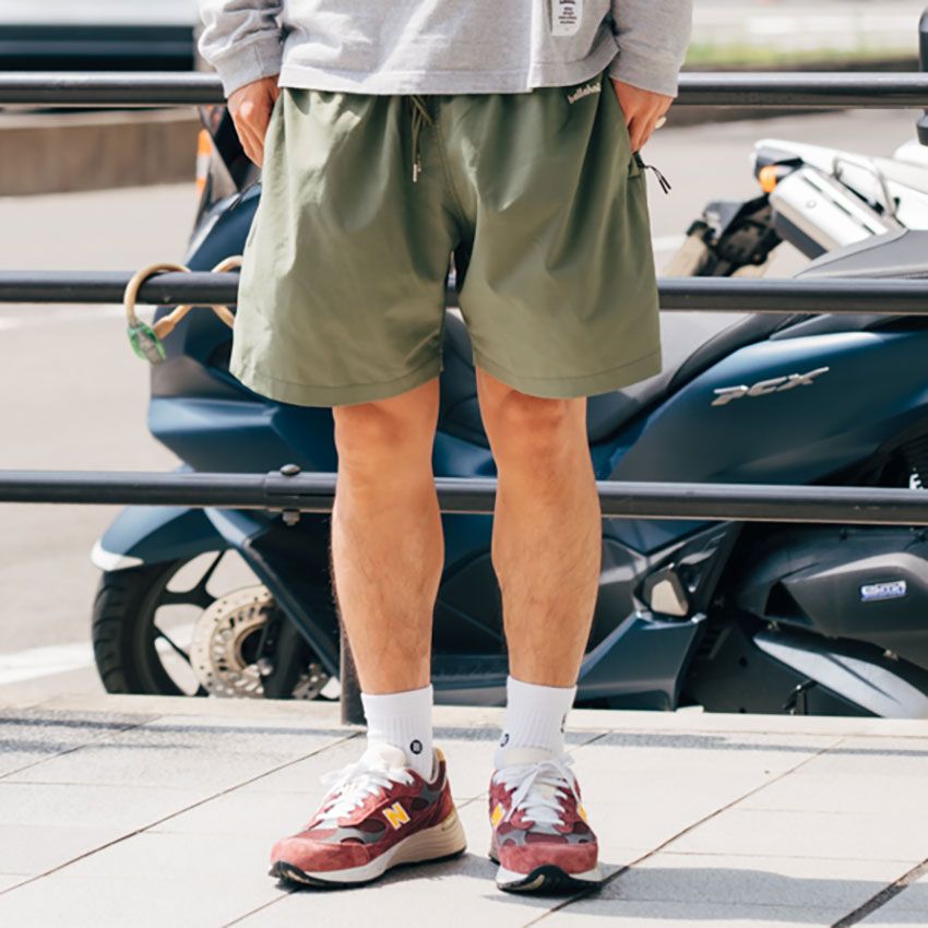 短パンを品良くはきこなすには“色選び”がカギになる。なかでもおすすめなのがカーキだ。落ち着いた印象ながらシンプルにまとまりすぎず、程良い個性を発揮してくれる。