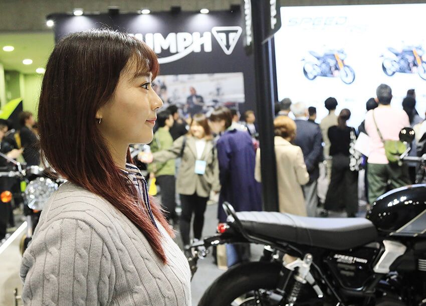 ハーレーに劣らず人気を誇る老舗ブランド、トライアンフのブースでは、独立したヘッドライトが特徴的な「SPEEDTRIPLE 1200RS」などのスポーツモデルに加えて、普遍的なネイキッドスタイルの「SPEEDTWIN」なども展示されていました。