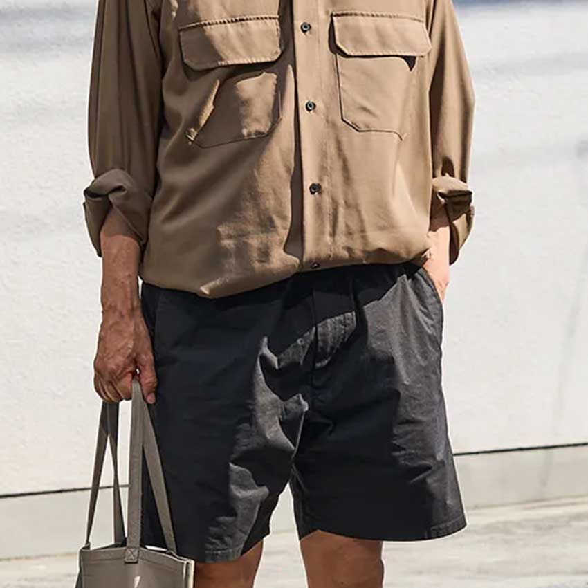 おびやさんのスナップをすべて見るおびやさん(59歳)膝上丈で爽やかなワークマンの黒ショーツを取り入れたおびやさん。カーキのシャツを下ボタンだけ開けて白Tを見せるというレイヤードテクもスタイルアップの秘訣だ。